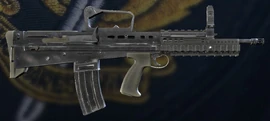 - "Assault rifle favored by SAS for medium to long range combat. Takes 5.56x45mm rounds."